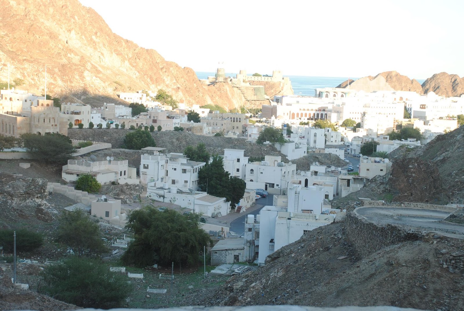 Mandhari ya Majengo katika moja ya Mji wa Mascat Oman onavyoonekana picha ukiwa katika mandhari nzuri ya kupendeza.