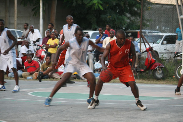 Mchezaji wa timu ya Rangers akiwa na mpira na huku wachezaji wa timu ya Polisi wakigombea mpira katika mchezo huo.timu ya Polisi imeshinda kwa vikapu 55-52.