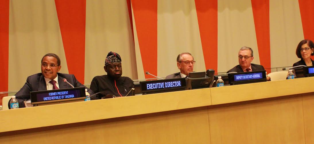 Dr. Babatunde Osotimehin akielezea jambo kwa Mhe Rais mstaafu Jakaya Kikwete, wengine ni Balozi Carmelita Salas, Mjane wa Rafael M. Salas aliyekuwa Mkurugenzi Mtendaji wa kwanza wa UNFPA.