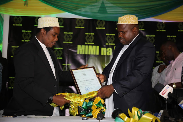Naibu Waziri Wizara ya Nchi Ofisi ya Rais Tawala za Mikoa na Idara Maalum za SMZ Mhe. Shamata Shaame Khamis akizindua Taasisi ya Mimi na Wewe kulia Mkuu wa Mkoa wa Mjini Magharibi Unguja Mhe. Ayoub Mohammed Mahmoud, hafla hiyo imefanyika katika ukumbi wa Idrisa Abdulwakil Kikwajuni Zanzibar.