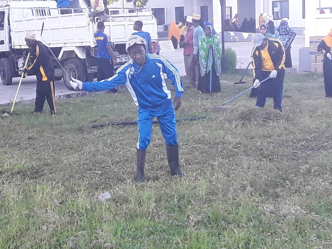 Mkuu wa Wilaya ya Mkoani Pemba, Issa Juma Ali, akijumuika na Wananchi wa Wilaya ya Mkoani Kisiwani humo, ikiwa ni siku ya usafi kitaifa ikiwa ni miongoni mwa shamra shamra za miaka 55 ya Mapinduzi Zanzibar.