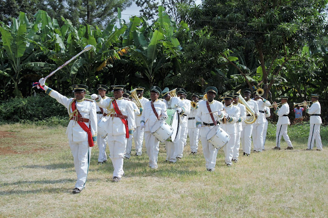 Kamishna wa Uhifadhi wa Shirika la Hifadhi za Taifa (TANAPA),Dkt Allan Kijazi akipokea saluti kutoka kwa kiongozi wa Brass Bendi ya Shirika la Hifadhi za Taifa (TANAPA) mara baada ya kufanya ukaguzi.