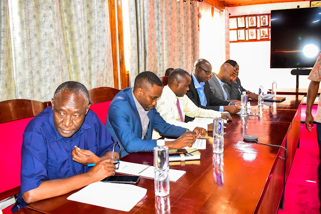Baadhi ya Wakurugenzi wa Idara na Wakuu wa Vitengo Ofisi ya Waziri Mkuu (Sera, Bunge na Uratibu) pamoja na kikosi kazi wakifuatilia kikao cha kupokea taarifa kuhusu maandalizi ya Rasimu ya mwongozo wa Kitaifa wa Ufuatiliaji na Tathimini katika Taasisi za umma kilichofanyika katika Ukumbi wa Ofisi hiyo Jijini Dodoma.