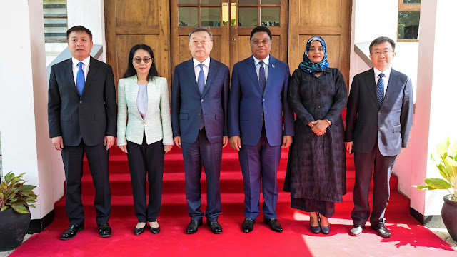 Waziri Mkuu Kassim Majaliwa akiwa katika picha ya pamoja na Mjumbe wa Kamati Kuu wa Chama cha Kikomunisti cha China na Katibu wa Kamati ya CPC Jimbo la Shanxi Tang Dengjie, Ofisi Ndogo ya Waziri Mkuu magogoni Jijini Dar es Salaam, Juni 21, 2024.