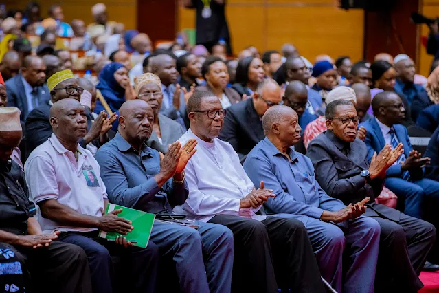 Sehemu ya Wazee wa Mkoa wa Dar es Salaam wakiwa kwenye Kituo cha Mikutano cha Kimataifa cha Julius Nyerere (JNICC), Jijini Dar es Salaam kwa ajili ya kumsikiliza Rais wa Jamhuri ya Muungano wa Tanzania Mhe. Dkt. Samia Suluhu Hassan tarehe 02 Desemba, 2025.
